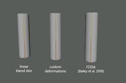 If you have followed this tutorial up to here, congratulations, you have understood and implemented your first SIGGRAPH deep learning paper. ‘Fast and Deep Deformation Approximations’ provides an interesting solution to make character deformations faster and portable. This is a Python prototype implementation, so rest assured it won’t be fast, but all the pieces are there. The deformations look very much like the original and the model generalizes well (try to play around with the joint). While the paper is limited to movement from joint transformations I think you can see that it is not impossible to connect other things to the input and test how the model reacts.
