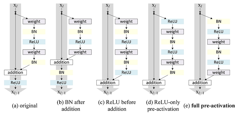 Following this intuition, the authors of [2] refined the residual block and proposed a pre-activation variant of residual block [7], in which the gradients can flow through the shortcut connections to any other earlier layer unimpededly. In fact, using the original residual block in [2], training a 1202-layer ResNet resulted in worse performance than its 110-layer counterpart.variants of residual blocks