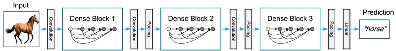 Huang et al. [9] proposed a novel architecture called DenseNet that further exploits the effects of shortcut connections — it connects all layers directly with each other. In this novel architecture, the input of each layer consists of the feature maps of all earlier layer, and its output is passed to each subsequent layer. The feature maps are aggregated with depth-concatenation.