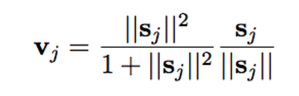 Capsule is a nested set of neural layers. So in a regular neural network you keep on adding more layers. In CapsNet you would add more layers inside a single layer. Or in other words nest a neural layer inside another. The state of the neurons inside a capsule capture the above properties of one entity inside an image. A capsule outputs a vector to represent the existence of the entity. The orientation of the vector represents the properties of the entity. The vector is sent to all possible parents in the neural network. For each possible parent a capsule can find a prediction vector. Prediction vector is calculated based on multiplying it’s own weight and a weight matrix. Whichever parent has the largest scalar prediction vector product, increases the capsule bond. Rest of the parents decrease their bond. This routing by agreement method is superior than the current mechanism like max-pooling. Max pooling routes based on the strongest feature detected in the lower layer. Apart from dynamic routing, CapsNet talks about adding squashing to a capsule. Squashing is a non-linearity. So instead of adding squashing to each layer like how you do in CNN, you add the squashing to a nested set of layers. So the squashing function gets applied to the vector output of each capsule.image 3.1: Novel Squashing Function