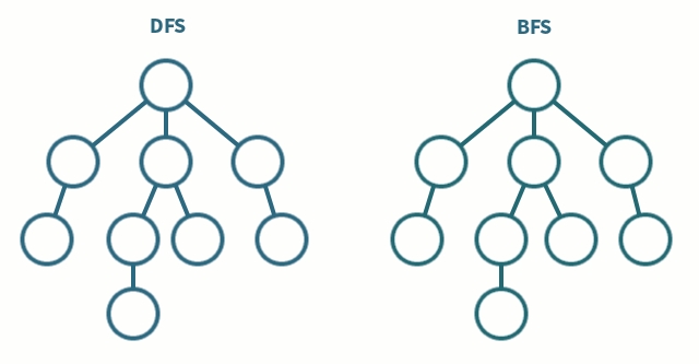 When we search through a tree to find if it contains a certain node, there are two algorithms we can build. We can traverse the tree with a breadth-first or depth-first approach.