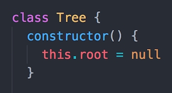 When building a Tree class, we only need a property to point to the first node, also known as the root.